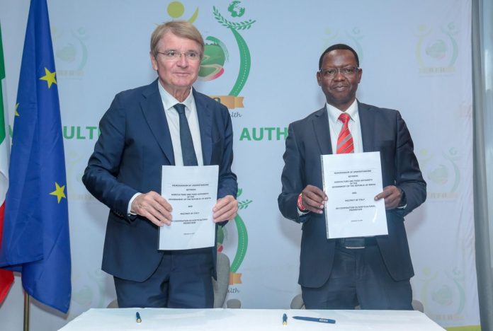 The signing ceremony, held in Nairobi, was graced by high-profile dignitaries, including the Italian Ambassador to Kenya, H.E. Roberto Natali, AFA Chairman Hon. Cornelly Serem, Kenya Agricultural and Livestock Research Organization (KALRO) Director-General Dr. Eliud Kireger, and Italian Trade Agency Director Giuseppe Manenti. Also present was Christine Chesaro, Acting Director of the Horticultural Crops Directorate, alongside a delegation of Italian distributors of agricultural machinery, farm technologies, and importers of Kenyan horticultural products.