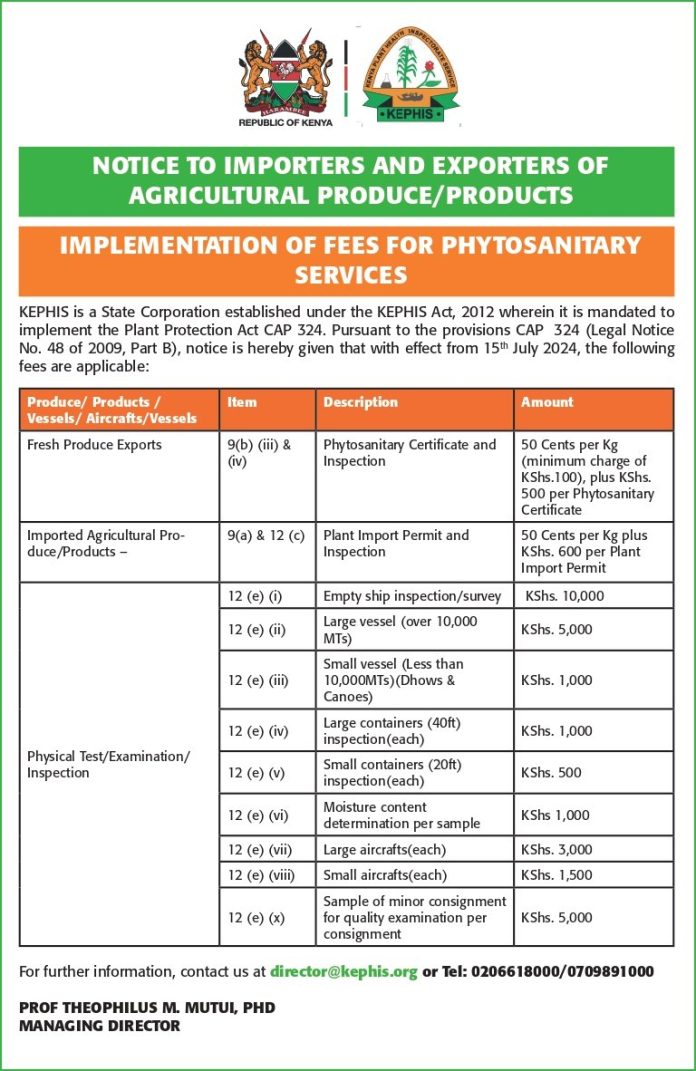 The Kenya National Chamber of Commerce and Industry (KNCCI) has issued a memorandum to the Kenya Plant Health Inspectorate Service (KEPHIS) expressing significant concerns about the impending implementation of new phytosanitary service fees, scheduled to take effect on July 15.