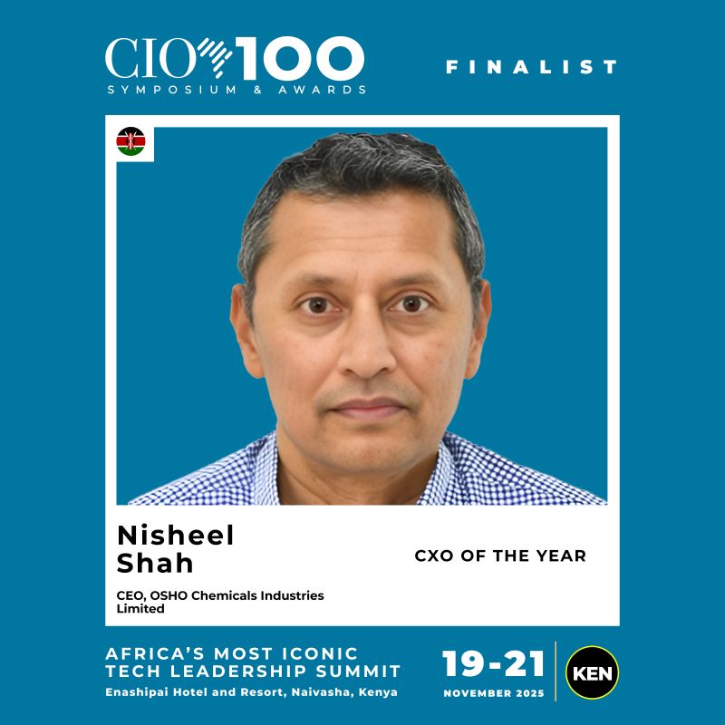 Nisheel Shah, Chief Executive Officer of Osho Chemical Industries Ltd, has been named a finalist for the prestigious CXO of the Year Award at the CIO100 Symposium & Awards 2025, positioning him among an elite group of technology leaders reshaping Africa’s digital transformation landscape.